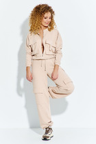 Современный комфортный костюм, состоит из брюк карго и укороченного свитшота. Отлично подойдёт для дома, прогулок, путешествий и отдыха. Пошит из теплой, комфортной ткани. Свитшот покроя оверсайз со спущенной линией плеча. Горловина, манжеты рукавов выполнены из ткани-компаньона кошкорсе. По центру переда вышивка-логотип в цвет ткани. Свитшот с кулисой по низу с резинкой внутри и фиксатором по центру переда, что позволит зафиксировать свитшот на талии. Брюки расширенные к низу, с возможностью заузить и зафиксировать ширину внизу (низ имеет кулиску с резинкой и фиксатором). На передних половинках брюк удобные накладные карманы, складки в районе линии колен. Пояс из ткани компаньена кошкорсе со шнуром и резинкой внутри.