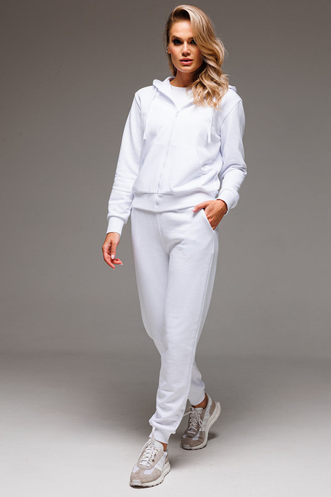 Классический женский спортивный костюм состоит из худи на застёжке-молнии и брюк на манжетах. Всесезонная ткань сделает его любимым в Вашем гардеробе как для дома, так и улицы.