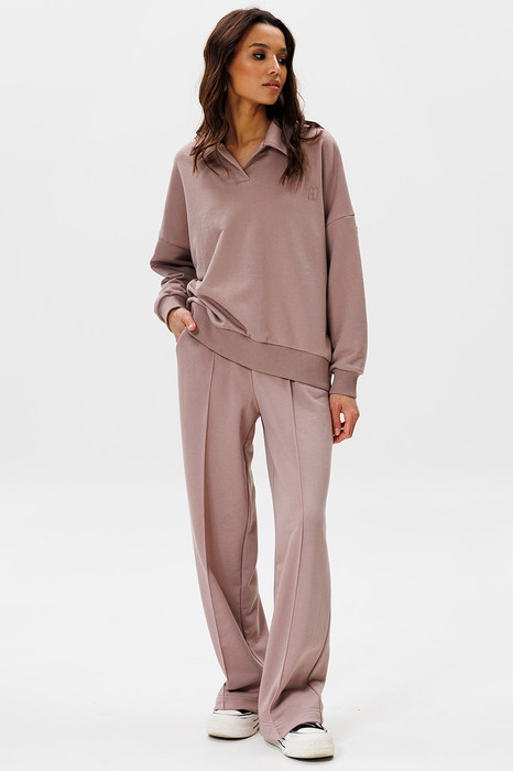 Для очаровательного образа не хватает воротничка! Воротник - маленькая деталь, которая «смягчает» и делает нежным весь аутфит. Брюки со стрелками добавят образу строгости и деловитости, что позволит носить костюм как на прогулки, так и в офис.