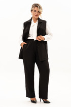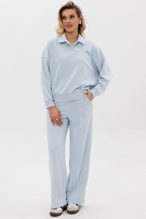 Для очаровательного образа не хватает воротничка! Воротник — маленькая деталь, которая «смягчает» и делает нежным весь аутфит. Брюки со стрелками добавят образу строгости и деловитости, что позволит носить костюм как на прогулки, так и в офис.
