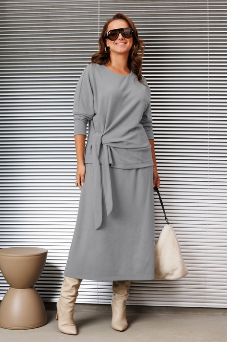 Джемпер свободного силуэта, вырез горловины округлый. Рукав спущенный длинный. По переду драпировка на завязке из основной ткани. Джемпер без застежки.