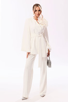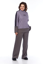 Костюм женский, состоящий из джемпера и юбки. Джемпер полуприлегающего силуэта из мягкого трикотажного полотна с добавлением ангоры со втачными немного спущенными рукавами и округлым вырезом горловины. По переду дизайнерская вышивка. Юбка полуприлегающего силуэта, зауженная книзу, на эластичной подкладке с притачным поясом на резинке; по спинке шлица. Рекомендована бережная стирка при t 30; глажение при максимальной температуре прессующей поверхности утюга не более 110 С.