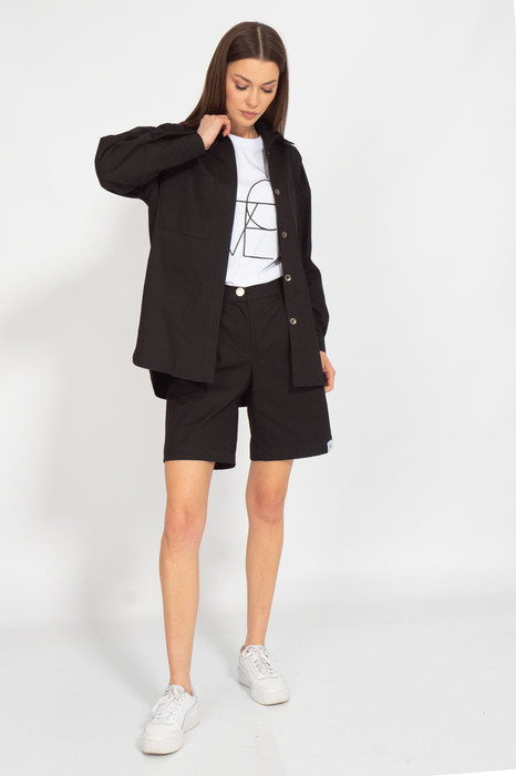 Костюм джинсовый свободного кроя, сочетает в себе офисную строгость и свободный спортивный стиль. Состоит из рубашки и шорт. Ткань Тиффани одна из лучших джинсовых тканей по своим характеристикам. Плотность джинса и нежность велюра обеспечивают невероятный комфорт.