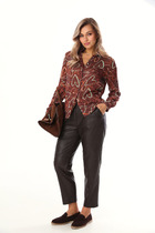 Блуза: Изысканный крой с аккуратным воротником и натуральной текстурой льна подчеркивает женственность. Легкий силуэт идеально сочетается с брюками, создавая целостный лук для офиса, прогулок или отдыха.