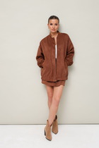 Стильный спортивный костюм, комбинированный двумя типами ткани, идеальное сочетание стиля и удобства. Бомбер свободного кроя, что придает легкости в движении, застежка на молнии, воротник стойка, рукав втачной на спущенной пройме с отделкой в цвет брюк, прорезные карманы с листочкой. Брюки из костюмной ткани с прорезными карманами, пояс на резинке, в боковых швах отделочный кант в цвет бомбера.