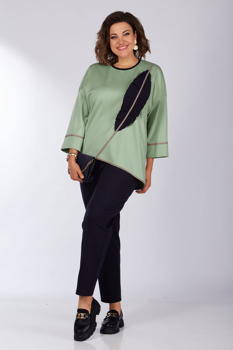 Красивый и стильный костюм в котором вы можете пойти не только на прогулку, но и ходить в нем на работу, по делам, выбираться в кино или кафе. В комплекте одежды будет комфортно осенью, весной и летом. Костюм состоит из брюк свободного силуэта, на резинке,  с карманами и стильного дизайнерского джемпера с асимметричным декоративным подрезом и отделкой, делающие образ этого костюма интересным и запоминающимся. Рукав втачной на спущенной пройме с отрезной манжето. Этот стильный  костюм выполнен из трикотажа высокого качества,  станет базовой вещью вашего гардероба. Подойдет для девушек, ценящих удобство, а также комфорт, красоту и стиль.