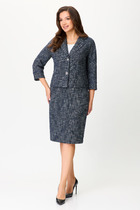 Жакет женский из джинса , свободного силуэта,  длиной ниже линии талии, со спущенной линией плеча, с втачными рукавами, с втачным воротником, с центральной сквозной застежкой на 5 петель и 5 пуговиц. Детали переда жакета с кокетками, нижние части с 2-мя рельефными швами и вытачками, по шву притачивания кокеток вставлены клапаны и обработаны карманы с застежкой на 1 петлю и пуговицу.  Детали с цельнокроенными подбортами. Деталь спинки жакета с отрезной кокеткой, нижняя часть с 2-мя рельефными швами. Рукава втачные двухшовные, с притачными манжетами, манжеты с застежкой на 1 петлю и пуговицу. По швам притачивания манжет закладываются по 3 складки, в локтевом шве обработан разрез.  Воротник сорочечный с цельнокроеной стойкой.