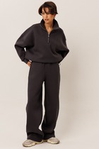 Элегантный комплект, состоящий из полуприлегающего жакета и облегающей юбки из имитирующей кожи.