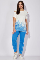 Эффектный и неординарный комплект, в стиле «casual». Модель состоит из свободной жилетки песочного оттенка и молочной футболки с печатью. Жилетка со спущенным плечевым швом; с отложным воротником. Застежка центральная на петли и пуговицы с планкой. По полочке расположены накладные карманы с имитацией клапана. По низу предусмотрен съёмный пояс с декоративной пряжкой в тон изделию. Спинка без особенностей. Футболка в комплекте с округлым вырезом горловины и боковыми разрезами по низу. Рукав вточной, укороченный. Данный комплект отлично сочетается с различными элементами гардероба, подчеркивая ваш уникальный стиль и вкус. Подойдет в комплекте с базовыми брюками из коллекции от бренда LILIANA под арт. М-БрЛ!