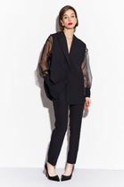 Этот костюм отлично садится на большие размеры и плюс сайз, подчеркивая достоинства фигуры и скрывая лишнее.