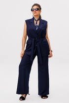Джинсы свободного кроя с объёмом в области бёдер и ног, которые сужаются к низу что делает их более аккуратными и удобными. Джинсы на притачном поясе, от середины передних половинок и по спинке на резинке. Имеются шлёвки под ремень. Застежка спереди по типу «гульфик». По бокам большие накладные карманы. По переду джинсовые карманы с отрезным бочком.