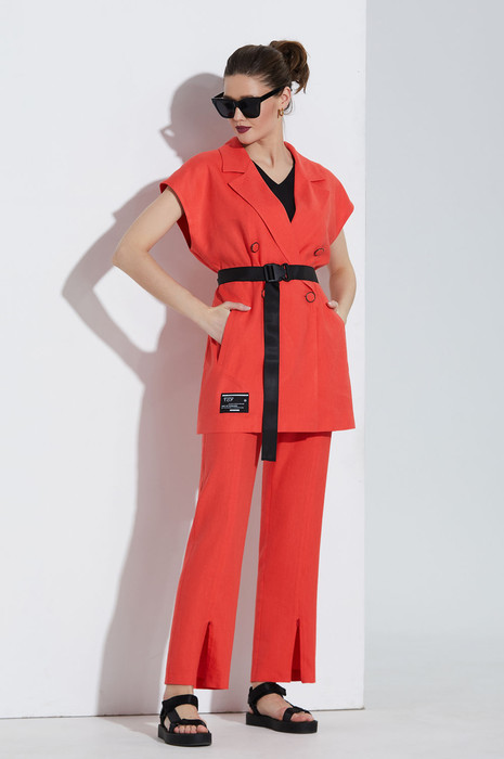 Состав: Костюм- Лён-100%; Подкладка- Хлопок-100%; Блуза- ПЭ-жоржет%;