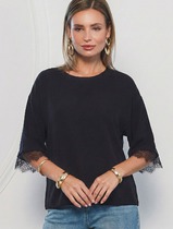 Блузка свободная из креп-шифона с кружевом