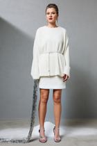 Юбка на поясе с резинкой и разрезом по боковому шву. Заднее полотнище с потайной молнией в среднем шве. Юбка на подкладке.