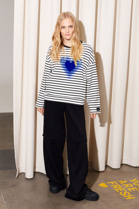 Комплект спортивный. Состоит из свитшота и брюк. Свитшот прямого, свободного силуэта, ниже линии талии. Рукав длинный, линия плеча спущенная. По переду выполнена декоративная велюровая печать «сердце».