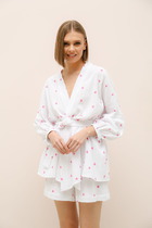 Пижама женская хлопковая станет настоящим украшением вашего гардероба и обеспечит максимальный комфорт и стильный вид в любое время года. Изготовленная из качественного хлопка, она мягкая и приятная на ощупь. Лёгкая, но в то же время прочная ткань позволяет коже дышать. Костюм домашний состоит из рубашки с коротким рукавом на пуговицах. Шорты свободного кроя, обеспечивающих удобную посадку и свободу движений, что идеально подходит для беременных и кормящих мам. Особое внимание уделено деталям — аккуратные швы и элегантная отделка. Универсальная одежда для дома делают этот пижамный комплект подходящим для девушек любых комплекций или девочки подростка. Пижама с шортами для сна отлично подойдёт как для повседневных задач по дому, так и для особенных случаев, когда хочется чувствовать себя милой и романтично. Пижама будет красивым подарком для себя или близких на любой праздник, день рождения.