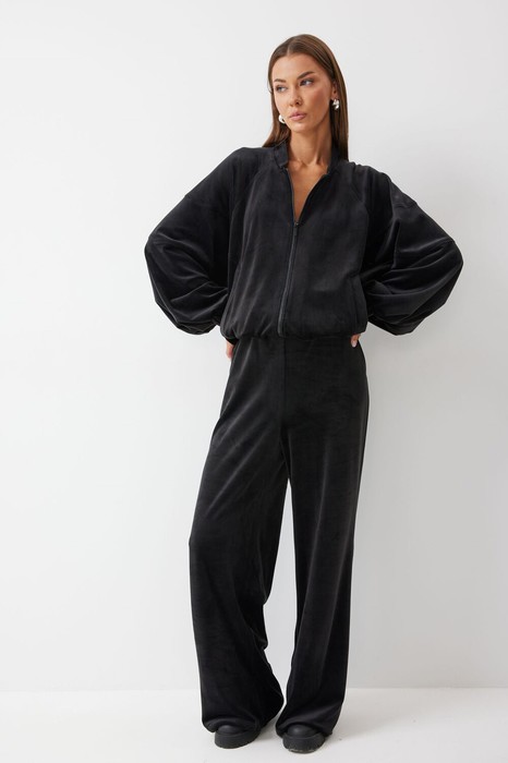 Джемпер прямого силуэта из комфортного трикотажного полотна. Горловина-стойка, по центру застежка на молнию. Рукав реглан с заниженной проймой, по низу манжета на резинке. По низу джемпера притачной пояс на резинке. По переду рельефные швы с карманами. Обращаем ваше внимание, что фурнитура может отличаться от фото.