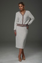 Стильный компект из жакета и брюк. Двубортный жакет выполнен из костюмной ткани в комбинации с темно-синим джинсом. Жакет на подкладке с застежкой на пришивные пуговицы. Рукав втачной, дополнен манжетой из джинса. Воротник отложной. Брюки классического прямого кроя с притачным поясом, выполненным из джинса, дополненным эластичной тесьмой. Посадка средняя. Дополнены удобными боковыми карманами. Застежка гульфик на молнию и пришивную пуговицу. Брюки выполнены из комфортной костюмной ткани. Длина жакета от плечевого шва 58см. Длина рукава 60см. Длина брюк по боковому шву 104см.