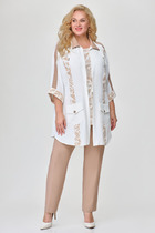 Универсальный женский брючный костюм из двух предметов станет незаменимым для Вашего гардероба в наступающем сезоне. Оба предмета данного комплекта отлично сочетаются между собой и смело могут создавать комбинации с другими вещами. Блуза оверсайз с круглой горловиной на стойке. Перед с центральной потайной застежкой планкой на петли-пуговицы. Спинка цельная со встречной складкой из-под стойки. Плечо спущено с втачным рукавом 3/4 и широкой подгибкой. Брюки длинные свободного кроя на притачном поясе с резинкой. По переду в боковых швах функциональные карманы. Комплект выполнен из приятной на ощупь вискозной ткани. Длина брюк по боковому шву 112+-1 см., по шаговому шву 83 +-1 см. Длина блузы по спинке 70 +-1 см., длина рукава от горловины 61 см. Изделие подойдет на рост 170-176 см.