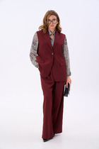 Универсальный костюм, который выглядит дорого и современно, но при этом дарит комфорт и лёгкость. Его можно носить как комплект или по отдельности: жакет с асимметричной застёжкой и акцентными пуговицами легко сочетается с джинсами, а брюки свободного кроя идеально смотрятся с блузой или футболкой.