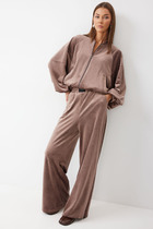 Костюм молодежный из трикотажного полотна «кулирка» в сочетании двух видов: гладкокрашеного с эффектом «варенки» и с набивным рисунком, состоящий из футболки и шорт. Футболка – с короткими втачными рукавами, свободного покроя, горловиной овальной формы, обработанной притачной бейкой из основного материала и принтом в центре полочки, выполненным в технике «шелкографии».Брюки – свободного покроя, с эластичной тесьмой по талии и нижним срезам, карманами в боковых швах.