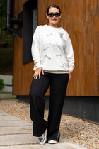 Костюм трикотажный женский состоит из джемпера и юбки нан подкладке. Джемпер прямого силуэта со спущенным втачным рукавом. В боковых швах обработаны разрезы. Горловина - цельнокроенная стойка. Юбка миди. Зауженная к низу. Спинка со средним швом, заканчивающимся разрезом. Талия обработана притачным поясом на резинке.