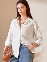 Блузка в полоску свободного силуэта с карманом из хлопка с добавлением льна
