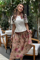 Этот нарядный костюм представляет собой элегантное и утонченное решение для особых случаев. Костюм состоит из корсета и юбки. Топ-корсет прилегающего силуэта с регилином по рельефам по переду и спинке, который обеспечивает дополнительную жёсткость и посадку на фигуре. Застёжка центральная бортовая на 6 петель и пуговиц. Низ переда фигурной заострённой формы, что подчёркивает элегантный силуэт. Модель идеально подходит для создания строгих, утонченных образов и может использоваться как в качестве элемента вечернего наряда, так и для повседневных образов с более нейтральными деталями. Наденьте его с нашей юбкой - это беспроигрышный дуэт, где игривость и строгость подчеркивают друг друга. Юбка прямая, зауженная к низу, сверху на притачном поясе. Застежка на тесьму-молнию в среднем шве, который переходит в шлицу. Костюм на подкладке.