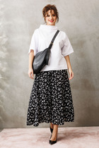 Блуза полуприлегающего кроя, с талёвыми вытачками, нежно обнимает фигуру, а слегка спущенное плечо и глубокий V-образный вырез дарят прохладу и открывают изящную линию шеи. По горловине струится стояче-отложной воротник, который, не замыкаясь, переходит в длинные фигурные завязки — их можно небрежно завязать бантом или остить свисающими, как шарф. Ниже талии блузу опоясывает двойная отрезная баска - она ложится мягкими волнами, скрывая линию соединения с юбкой или брюками, а разрез спереди добавляет интриги и свободы при движении. Молния аккуратно спрятана в левом боковом шве, а средний шов на спинке делает посадку безупречной.