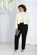 Обворожительный костюм-тройка: жакет, жилет и брюки. Жилет полуприлегающего силуэта, на подкладке. По переду рельефа карманы "листочки", застёжка на петли-пуговицы. По спинке вытачки и хлястик. Длина изделия 50 см. Жакет прямого силуэта. По переду нагрудная вытачка, переходящая в прорезной карман с клапаном. Двухбортная застёжка на петли-пуговицы. Рукав двухшовный, на логтевом шве отлетная шлица. Длина рукава 63 см. Длина изделия 77 см. Брюки полуприлегающего силуэта,зауженные к низу. По переду боковой карман, застежка на тесьму-молнию и пуговицу. Длина брюк 99 см.