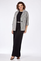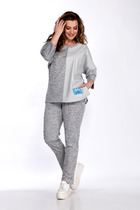 Костюм двухпредметный из облегченного денима: состоит из рубашки и юбки. Укороченная рубашка прямого кроя со спущенной линией плеча. Горловина обработана рубашечным воротником с отрезной стойкой. Застёжка центральная на кнопки. Спереди есть нагрудные карманы. Низ рукава обработан притачной манжетой, застёгивается на кнопки. Юбка длиной миди, расклешенная к низу, с асимметричным низом. Пояс притачной, по спинке собран на резинку. Переднее полотнище состоит из трех частей. Правая часть скреплена отделочной строчкой и кнопками. В боковых швах изделия расположены карманы. По спинке изделия идёт средний шов и две вытачки для удачной посадки по фигуре. Юбка без подкладки.