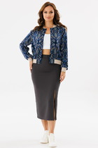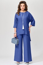 Костюм двухпредметный: состоит из джемпера и брюк. Джемпер из комбинированной ткани свободного силуэта. Рукав реглан. Воротник стойка. Брюки со стрелкой свободного кроя, верхний срез представлен широкой резинкой, с карманами.