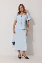 Костюм трехпредметный: состоит из топа, кардигана и шорт.Кардиган прямого кроя  с акцентным принтом. Горловина обработана рубашечным воротником с отрезной стойкой. Модель со слегка приспущенной линией плеча и рукавами длиной 7/8. Застёжка центральная на петли и пуговицы. По низу изделия разрезы. Топ на регулируемых бретелях с полукруглым вырезом. Удлиненные шорты прямого кроя, верхний срез представлен широкой резинкой, с карманами.