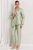 Кардиган свободного силуэта, длиной по середине спинки р.52,54,56,58,60 - 98 см; р.62,64,66 – 99,5 см, от шва втачивания воротника. Низ кардигана ассиметричной формы: укороченный спереди, удлиненный к центру спинки. Борта и горловина оформлены отложным воротником-шаль. Рукава втачные, одношовные. Длина рукавов 59 см. Низа рукавов оформлены фестонами.