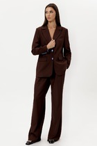 Представляем вам изысканный трех предметный костюм, который станет ярким украшением вашего гардероба на любом торжественном событии, будь то вечеринка, корпоратив, свадебное торжество или юбилей. Комплект брючный 3-х предметный, состоящий из кардигана, блузки и брюк. Кардиган выполнен из гипюра, силуэта "трапеция". Длина асимметричная: по переду короче, длиннее к середине спинки. Длина кардигана по посередине спинки 108,0 см. Линия горловины и борта оформлены отложным воротником-шалью. Рукава втачные, одношовные, длиной 59 см, по низу оформлены фестонами. Блузка выполнена из трикотажного полотна "масло", полуприлегающего силуэта, длиной по середине спинки 73.5 см. Перед с нагрудными вытачками, идущими от пройм, с настрочной кокеткой из гипюра, с фигурным низом. Спинка с талиевыми вытачками. Вырез горловины спинки и переда округлый, по переду с подрезной планкой, декорированной стразами. Рукава втачные, одношовные, длиной 27 см.
