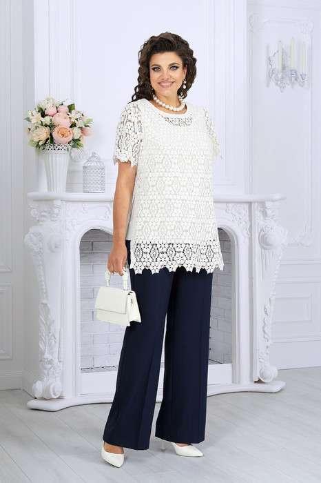Брючный комплект тройка, сочетающий в себе элегантность, комфорт и универсальность, станет настоящей находкой для современной женщины. Состоит из хлопкового джемпера, кружевной блузки и классических брюк, что позволяет носить элементы как вместе, так и по отдельности, создавая множество стильных образов. Этот наряд идеально подойдёт для офиса, деловых встреч, праздничных мероприятий и повседневной носки. Он универсален, летний, стильный, нарядный и особенно удачен для женщин с пышными формами — подчёркивает достоинства и дарит уверенность в себе.