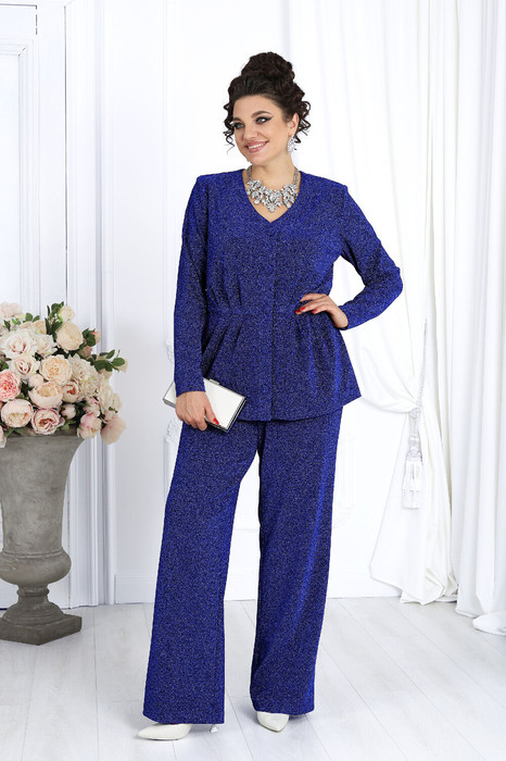 Элегантный брючный комплект – идеальный выбор для праздника, вечера в ресторане или важного мероприятия. Жакет с выразительным V-образным вырезом и аккуратными складками по линии талии подчёркивает женственный силуэт, а сияющая ткань с люрексом придаёт образу динамику и мягкость, создавая гармоничное сочетание классики и современности.