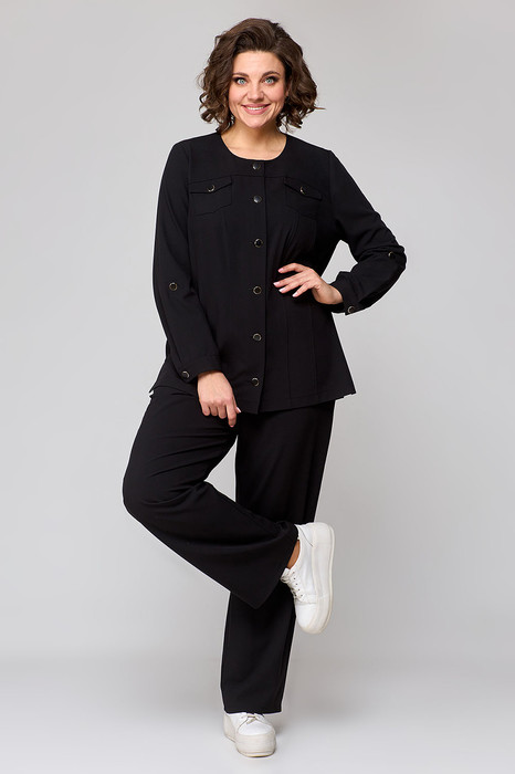 Стильный двух предметный костюм для женщин из костюмной ткани «гальяно» - это идеальное сочетание комфорта и элегантности. Такой костюм подходит как для офисного делового образа, так и для повседневного ношения. Жакет костюма выполнен в классическом стиле на пуговицах, без воротника с накладными карманами. Рукав длинный на манжете с патой на петлю и пуговицу. По боковым швам обработаны разрезы. Брюки костюма имеют прямой крой в стиле палаццо, что позволяет создать строгий и элегантный образ. Карманы на брюках расположены по бокам, что добавляет практичности и функциональности. Пояс брюк на резинке. Этот костюм не только обеспечит вам ощущение комфорта в любой ситуации, но также придаст изящности и женственности вашему образу. Если к костюму добавить из Вашего гардероба белую нарядную блузу- получится нарядный комплект.