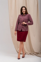 Привлекательный нарядно-повседневный костюм порадует комфортом и поднимет настроение. Костюм в полоску с прямыми брюками скрывает пикантные особенности фигуры, а легкая, струящаяся ткань мягко подчеркивает женственность образа. Вертикальная полоска визуально стройнит и вытягивает силуэт. Жакет без воротника, на подкладке. На полочке обработаны функциональные, прорезные карманы с листочкой. Брюки прямого кроя. В боковом шве выполнен карман-хулиган. На передней и задней половинке – вытачки. Верхний срез обработан притачным поясом, а в области боковых швов собран на эластичную тесьму. Модель с гульфиком, застежка на пуговицу и тесьму-молнию. Посадка высокая. Длина жакета в размерах  c 54 по 60 - 72 см, в размерах с 62 по 64 - 80 см.