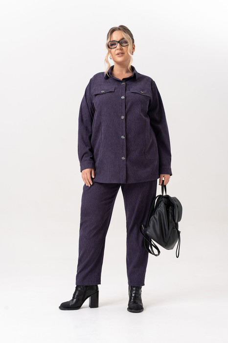 Костюм женский из штрукса - это отличная базовая модель, которая должна быть в гардеробе каждой девушки. Костюм состоит из свободной рубашки прямого кроя со спущенной линией плеча и брюк-бананов. Костюм из штрукса отлично подходит для прогулок, отдыха или путешествий. Рубашку можно носить навыпуск, дополнив топом или футболкой. Брюки женские подходят для любого типа фигуры, скрывают ее недостатки и подчеркивают достоинства. На брюках обработаны карманы-хулиганы. Брюки имеют удобную упругую резинку и гульфик на молнии. Рубашка имеет классический крой: воротник на стойке, кокетки на полочке и спинке, клапаны и накладные карманы, рукав с манжетой. Костюм с рубашкой подойдет девушкам и женщинам любого типа фигуры. Вы будете выглядеть непревзойденно и вызывать восхищение окружающих!