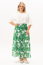 Женский юбочный комплект - идеальное решение для создания стильного и делового образа. Сочетание молочной нарядной блузы с шифоновой юбкой из принтованной ткани. Нарядная блузка оверсайз с пришивным цветком идеально подойдет для создания ярких и стильных образов в любое время года. Она выделяется своим уникальным и запоминающимся дизайном, который не оставит равнодушной ни одну модницу. Изготовлена из легкой и приятной к телу ткани, блузка обеспечивает комфорт и удобство во время ношения. Почему она покорит твоё сердце: мягкий дышащий хлопок , универсальный крой , элегантные детали. Комфортная, нарядная, длинная юбка-трапеция из шифона с обработанными бантовыми складками по талии. В боковой шов вставлена потайная молния. Юбка на поясе на петлю и пуговицу и частично на резинке. Лаконичный и элегантный фасон комплекта позволит носить его в повседневной жизни, а также как праздничный или вечерний наряд. Покупая этот комплект, Вы приобретаете два полноценных изделия: блузу и юбку, благодаря которым можно сделать несколько образов.