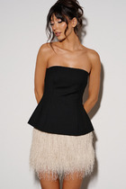 На переде расположены нагрудные вытачки. К низу топа притачена кулиса с резинкой и шнуром из основной ткани.