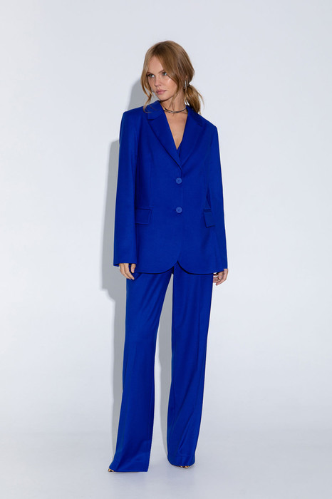 Текстильный костюм-двойка из свободного жакета со шлицами и прямых брюк-палаццо