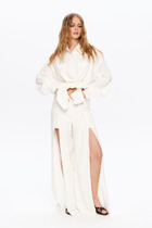 Длина жакета по спинке около 72 см в размерах 40-46 и около 74 см в размерах 48-52, длина рукавов около 62,5 см. Длина брюк по боковому шву с поясом около 99 см в размерах 40-46 и около 100,5 см в размерах 48-52, длина по внутреннему шву около 69,5 см.