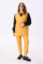 Длина жакета по спинке около 67 см в размерах 40-46 и около 69 см в размерах 48-52, длина рукава около 61 см. Длина юбки по боковому шву около 42 см в размерах 40-46 и около 46 см в размерах 48-52