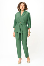 Длина жакета по спинке около 64 см в размерах 40-46 и около 67 см в размерах 48-52, длина рукава около 61 см. Длина брюк по боковому шву с поясом около 114 см в размерах 40-46 и около 115,5 см в размерах 48-52. Длина по внутреннему шву около 83 см