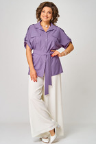 Детали: пиджачный воротник, перед с функциональными карманами, застежка на петли и пуговицы, рукава втачные двухшовные, спинка с рельефами и регулировкой-завязками по талии. Жакет на подкладке. Брюки с высокой посадкой на притачном поясе со шлевками, застежка на молнию и пуговицу, боковые карманы, передние половины с заутюженными стрелками и небольшими складками.