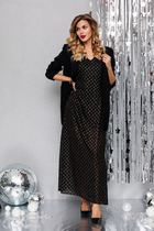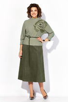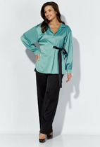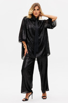 Длина жакета по спинке около 68,5 в размерах 40-46 и около 71,5 см в размерах 48-52, длина рукавов около 63 см. Длина брюк по боковому шву с поясом около 114 см в размерах 40-46 и около 115,5 см в размерах 48-52. Длина по внутреннему шву около 83 см