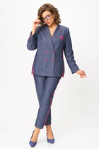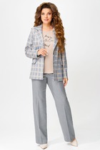 Детали: рубашка прямого силуэта, спущенная линия плеча, застежка на петли и пуговицы, длинные рукава с притачными манжетами, фигурный низ. Брюки с эластичным поясом, высокие разрезы, без застежки, без карманов, брюки на подкладке из основной ткани.
