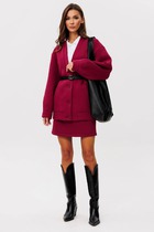 Костюм-тройка из оверсайз жакета, прямого жилета и мини-юбки из ткани под замшу.